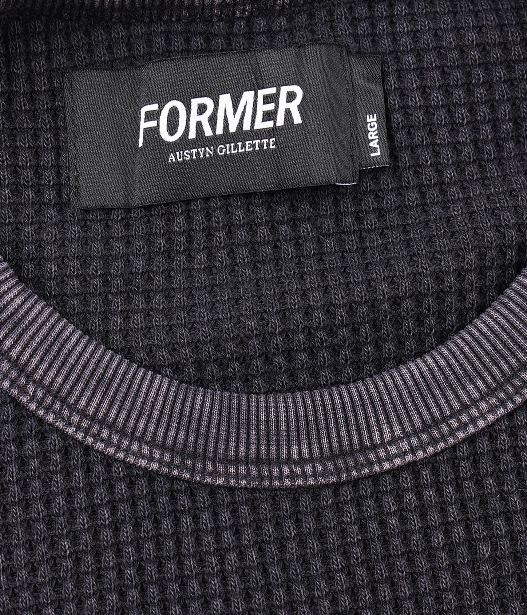 Designed in collaboration with FORMER founder Austyn Gillette, the AG Acid Long Sleeve Waffle is designed in a premium and soft cotton blend waffle and delivered in our AG waffle fit. Featuring a seasonal acid wash finish for a comfortable vintage feel, raw hem, bound collar, and Franchise F logo embroidery.
