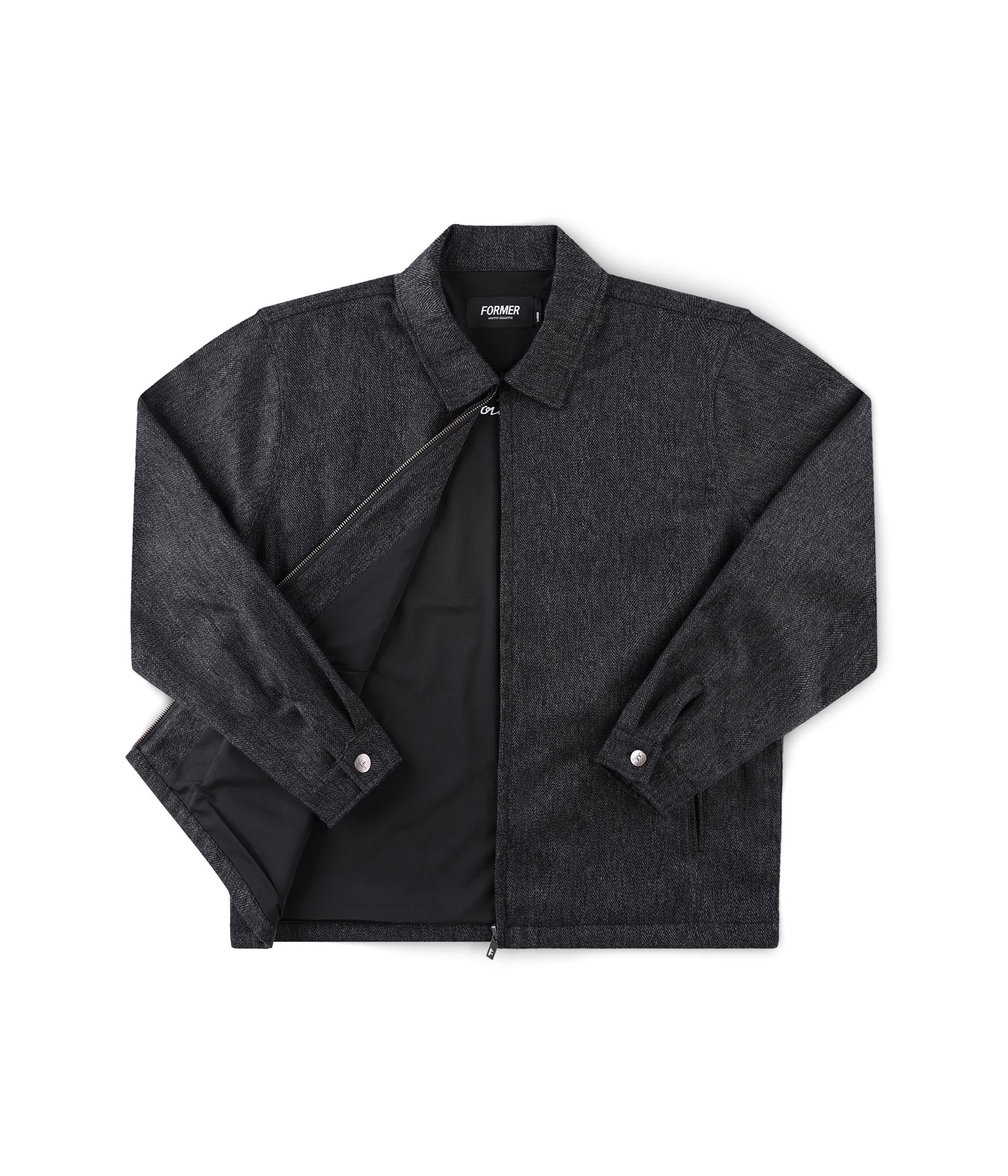 Designed in collaboration with FORMER founder Austyn Gillette, this premium jacket is constructed from a heavyweight 50% wool 50% polyester blend and delivered in our Cage jacket fit. Featuring a soft hand plastisol internal graphic, welt pockets, and button closure.