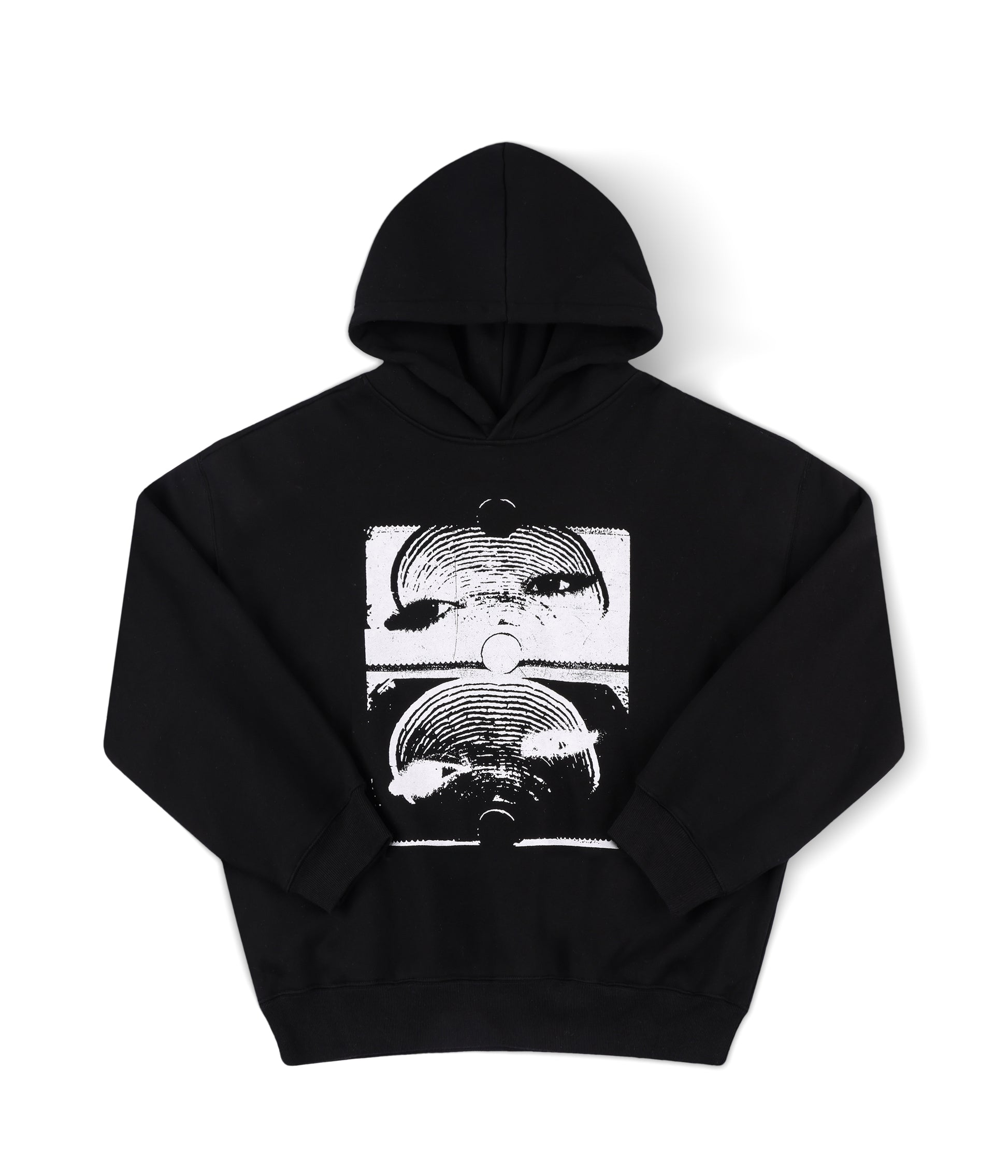 Constructed in a premium 330GSM cotton-poly blend for warmth and comfort and delivered in our FORMER boxy hood fit for a slightly cropped finish.. Featuring hand-drawn front and back graphics by artist Edouard Depaz in a soft hand plastisol screen print and tonal Franchise F logo embroidery on the hood. Finished a soft pre-wash finish.