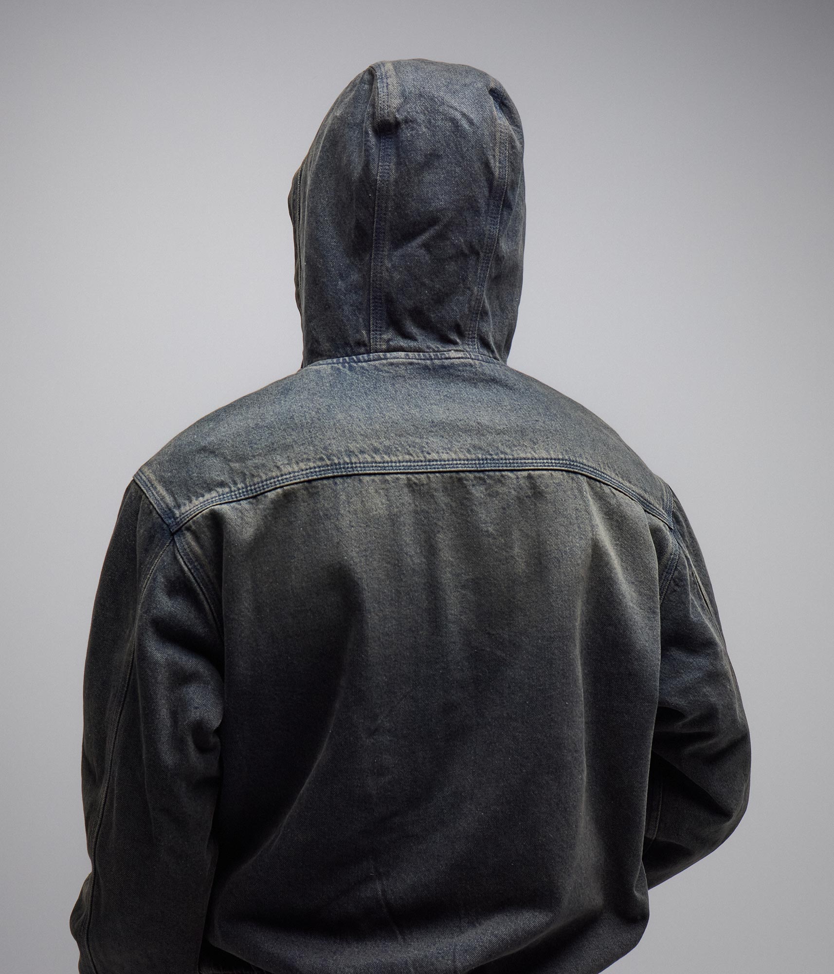 The Enigma Hooded Denim Jacket is constructed from premium 100% cotton denim and delivered in our hooded jacket fit with a vintage wash finish. Featuring a front kanga pocket, Crux logo label on pocket, woven label on chest, and a soft hand plastisol internal graphic. Complete with drawcords featuring branded metal aglets.