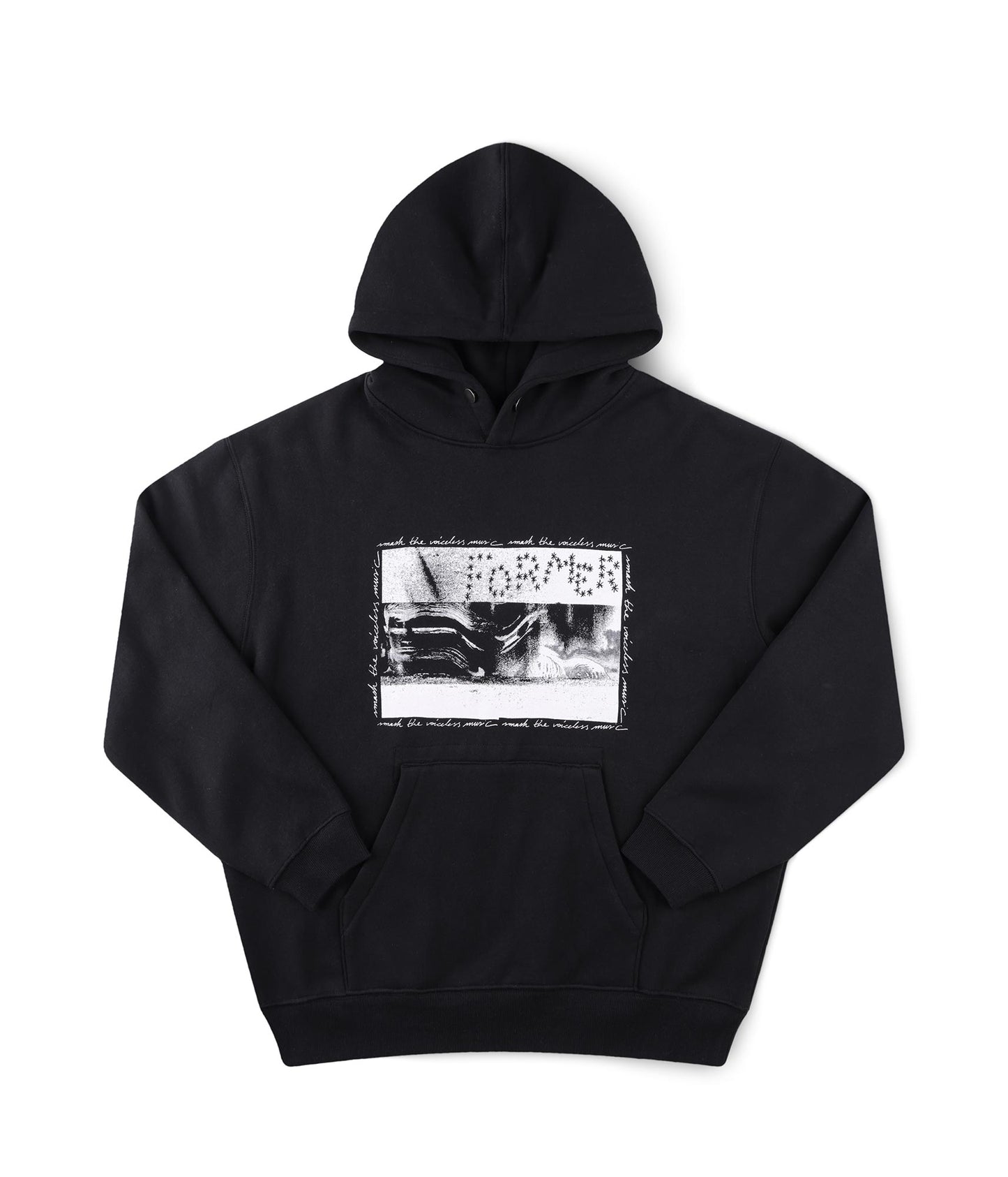 Designed in a premium heavyweight 400GSM cotton faced brushed fleece and delivered in our boxy FORMER hood fit. Featuring a front graphic in a soft hand plastisol screen print, Franchise F logo embroidery on hood, and drawcord closure with branded metal aglets. Finished with a kanga pocket featuring military stitch detail.