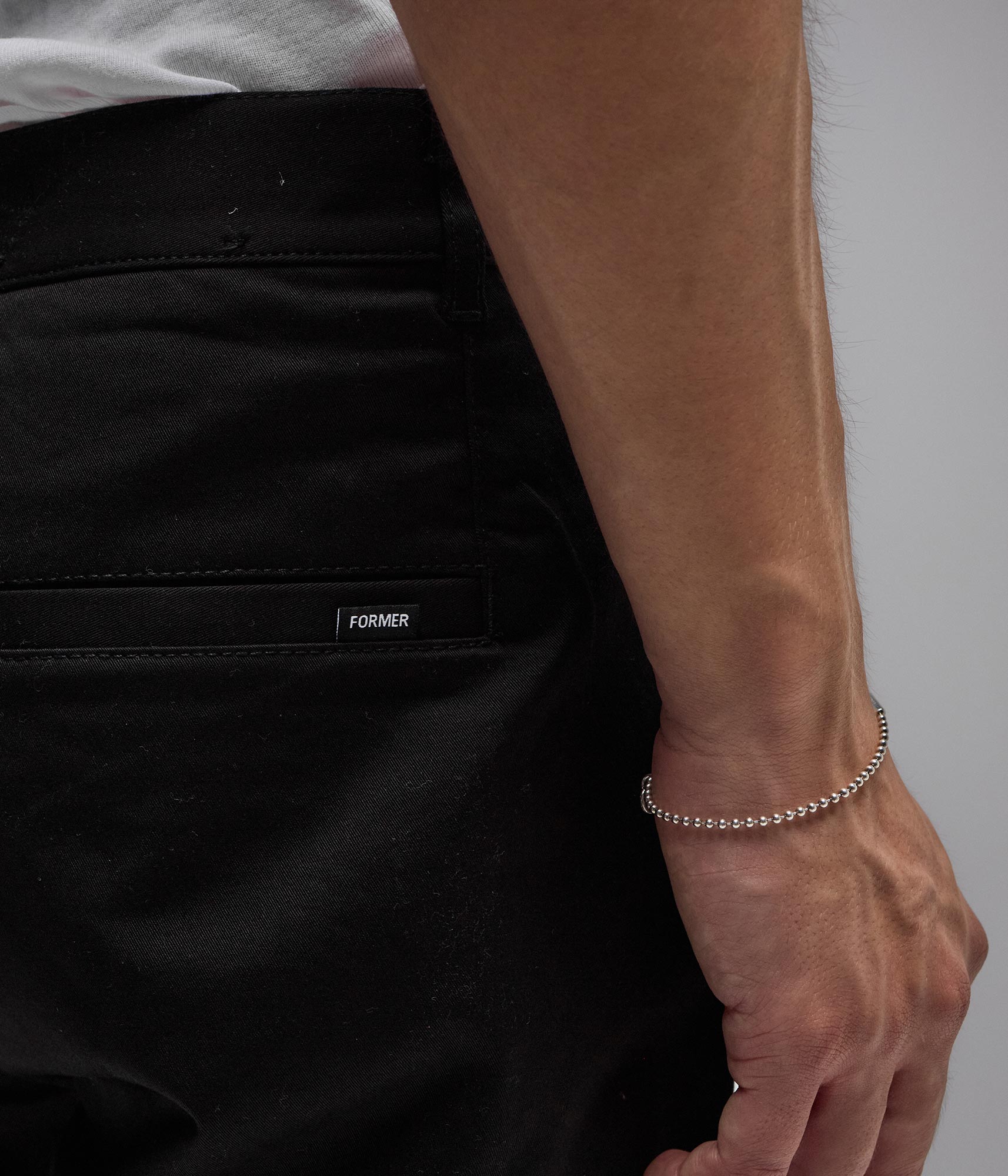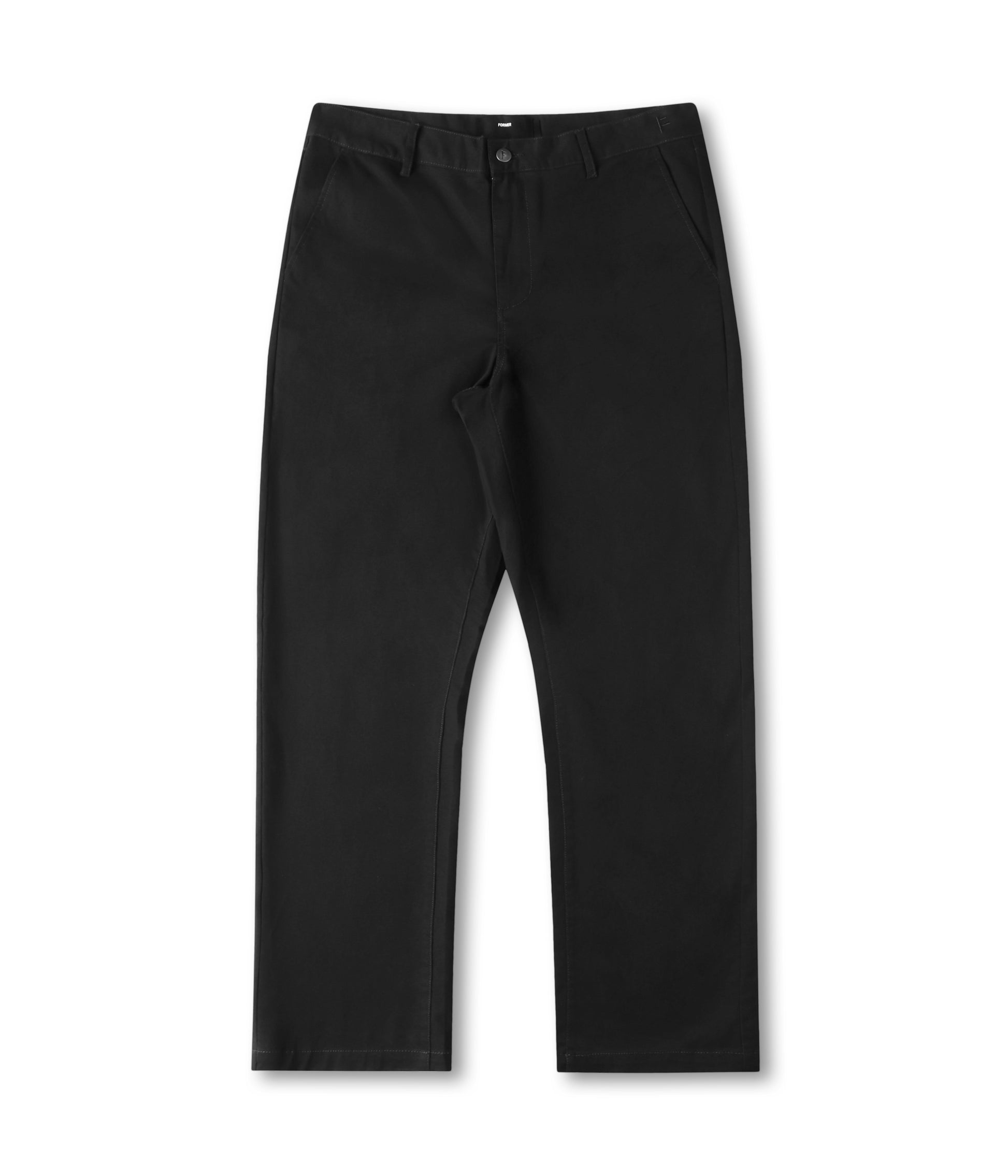 The Legacy Chino is a relaxed fit that falls to a 17" leg opening. Constructed from a premium and soft chino fabric in a cotton blend and featuring a fixed waist, Franchise F logo embroidery on waistband, double welt pockets, woven flag label on back pocket, and FORMER branded metal shank buttons.