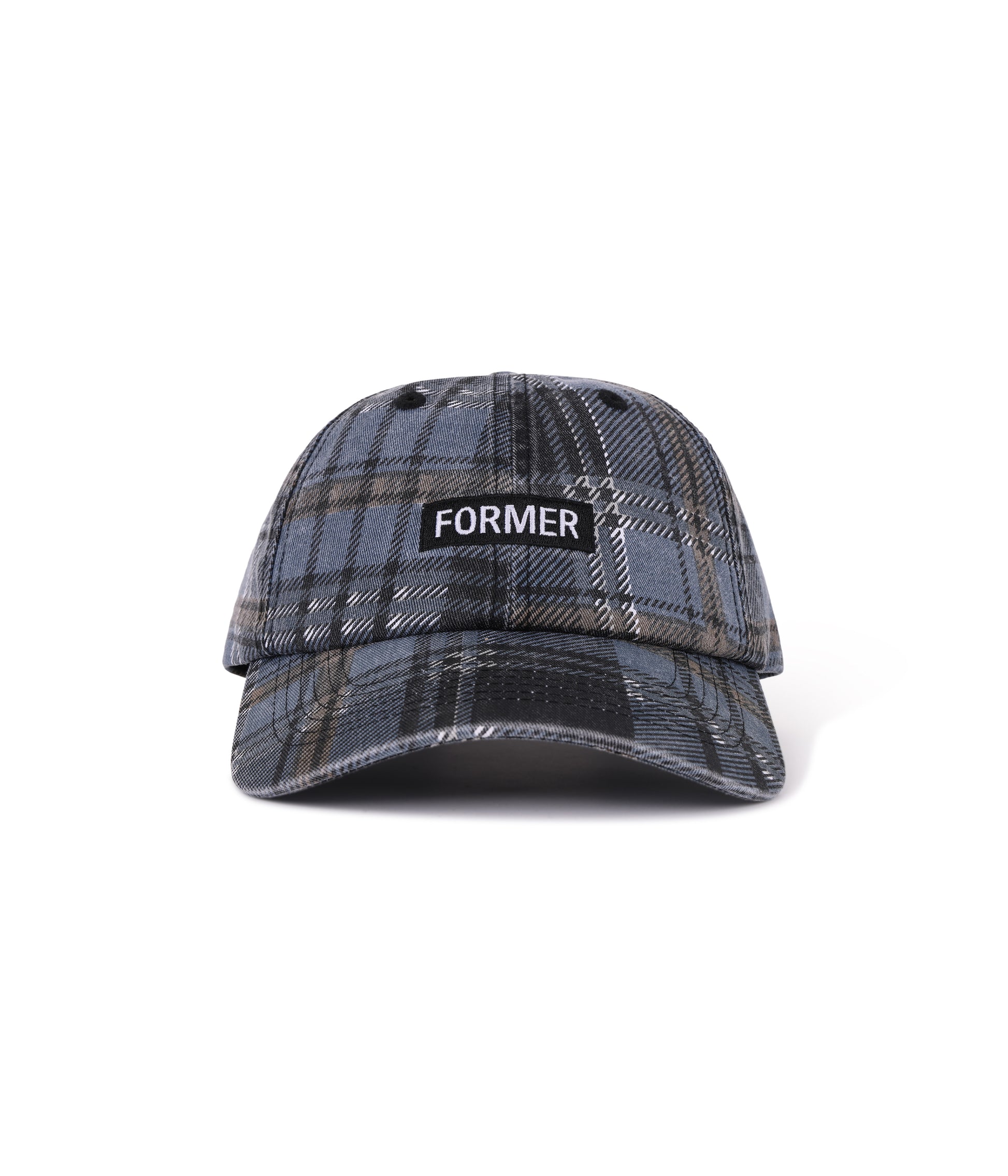 Delivered in a 100% cotton twill in a curve peak 6 panel cap design with a seasonal vintage wash. Featuring front graphic embroidery, yardage print, Signature FORMER Rose Rivet on Rear of Cap, and metal clasp and O ring closure.