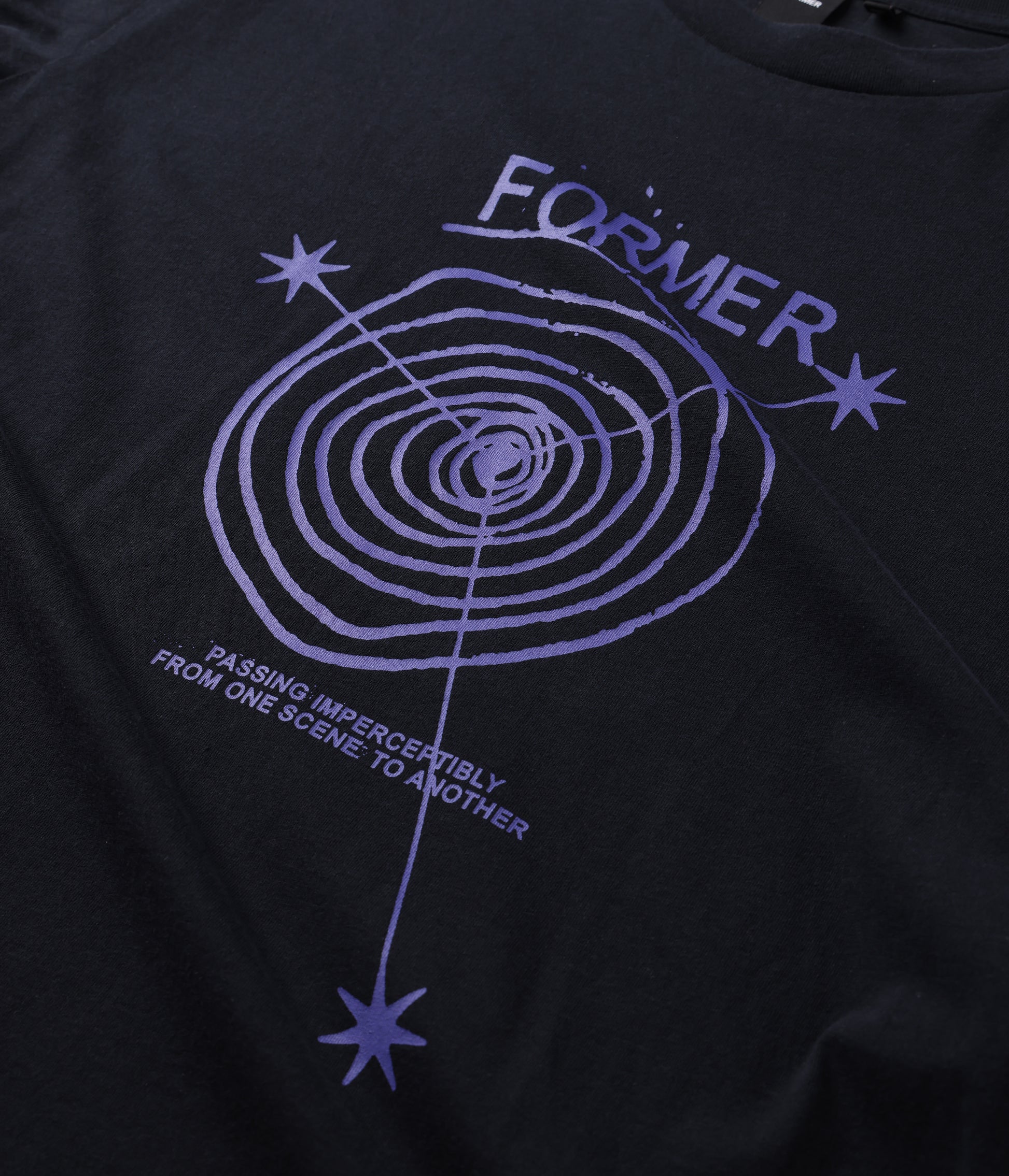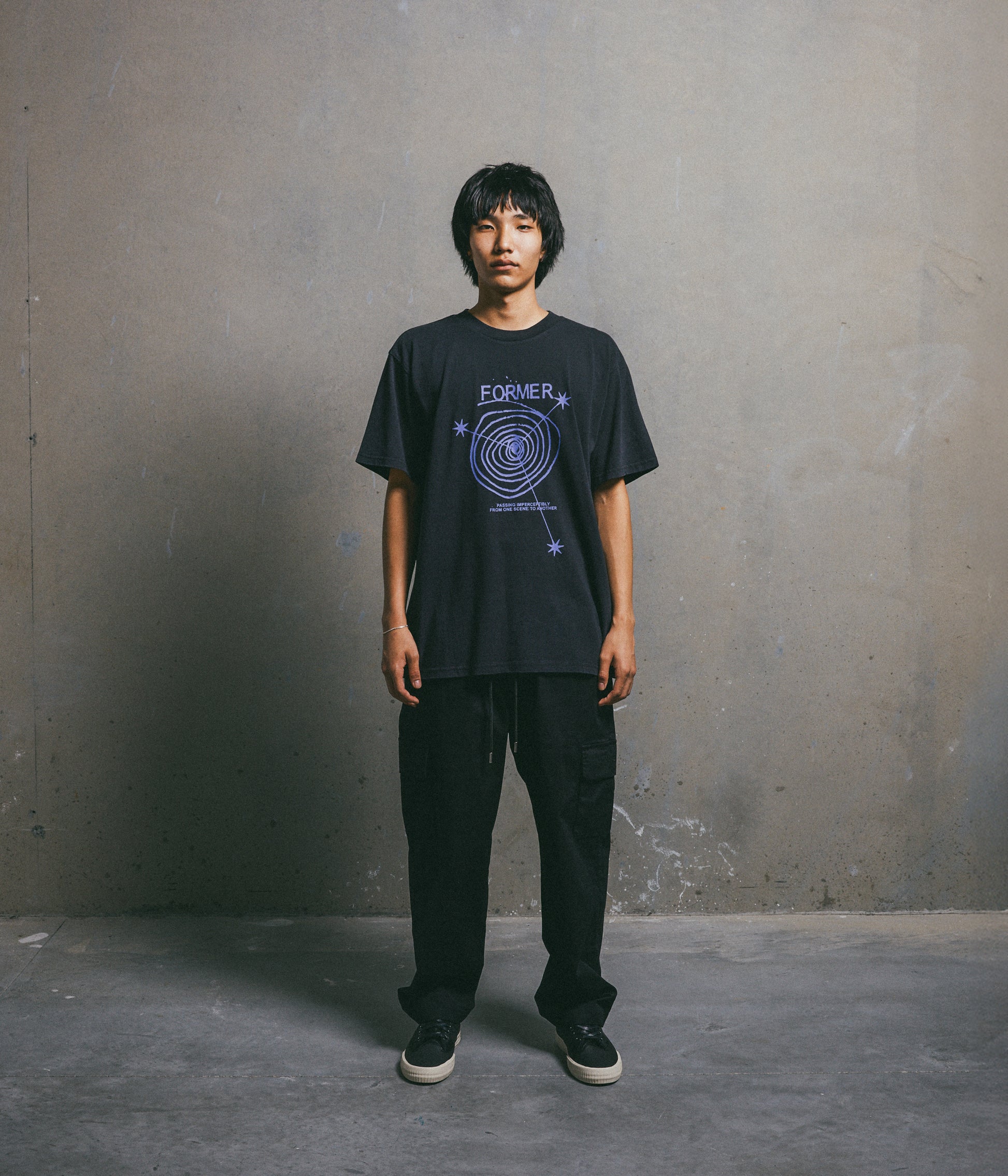 Delivered in a premium 200GSM jersey cotton and delivered in our standard FORMER T-shirt block for a relaxed and comfortable fit. Featuring a seasonal front graphic in a soft hand plastisol screen print and delivered in our FORMER "Merch-Wash" for a vintage worn-in feel.