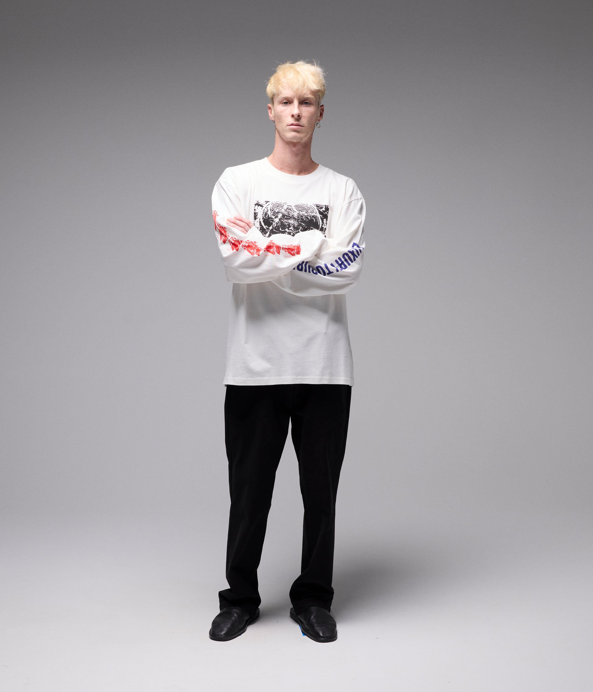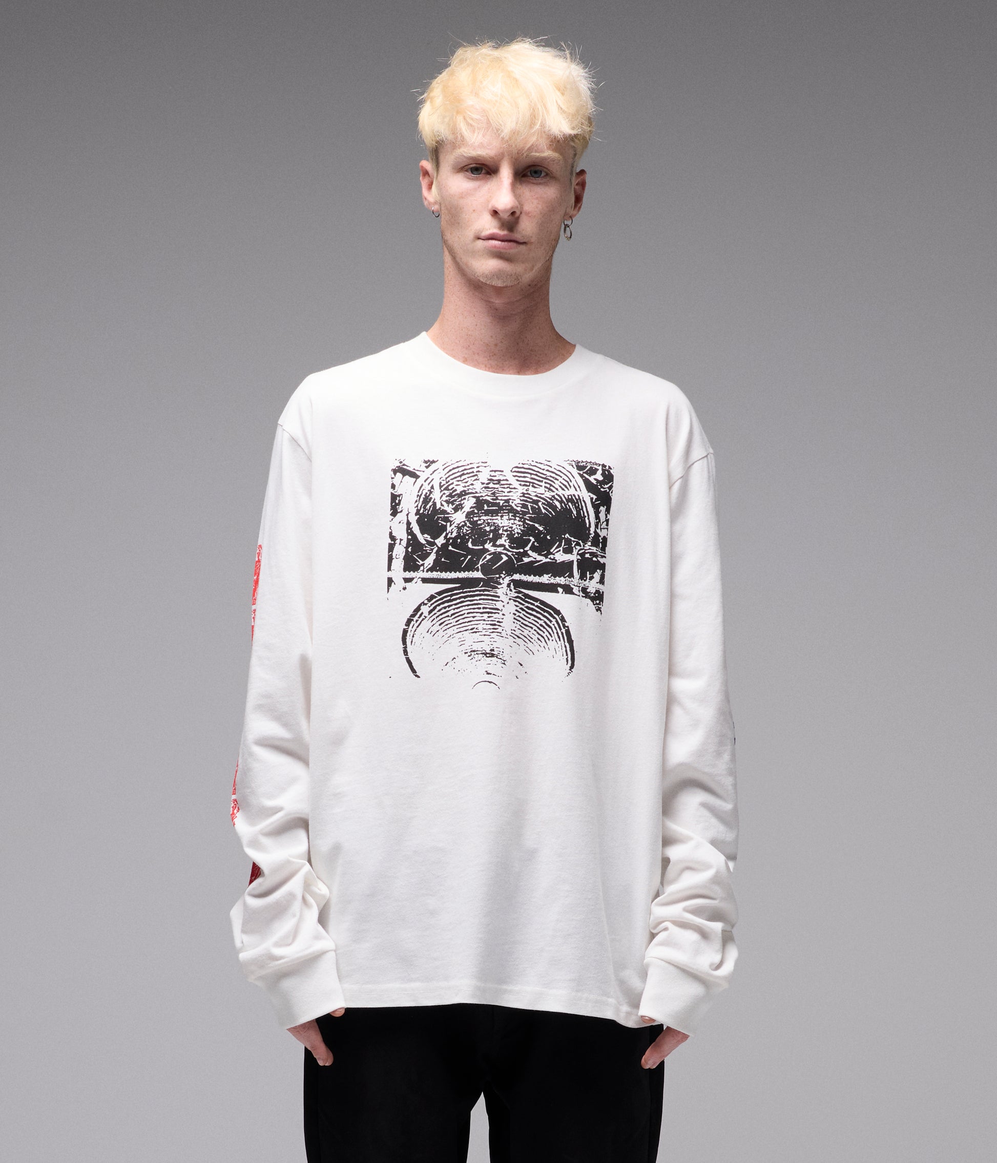 Delivered in a premium 200GSM jersey cotton and delivered in our standard T-shirt block for a modern and comfortable fit. Featuring front, back and sleeve graphics in a soft hand plastisol screen print on a solid oyster base color.
