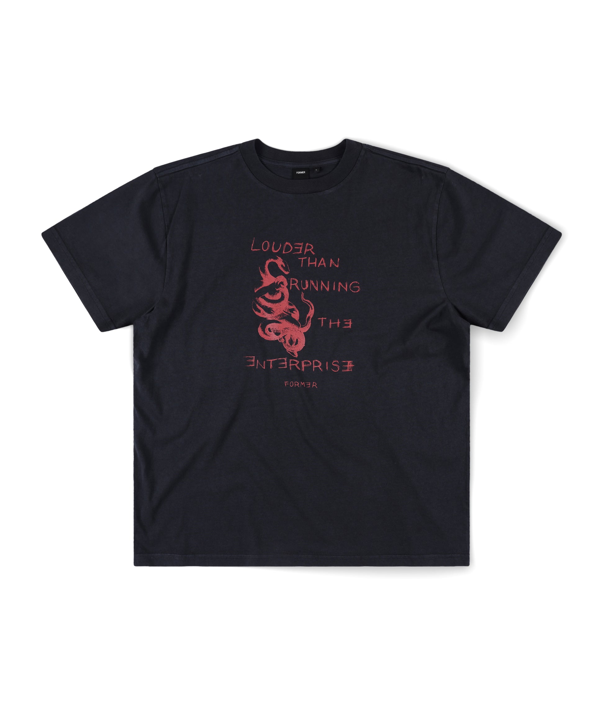 The Ravel Tee is designed in a premium 200GSM jersey cotton and delivered in our standard T-shirt block. Featuring a soft pigment dye for a vintage feel and a front centre hand-drawn graphic by artist Edouard Depaz applied in a soft hand plastisol screen print.
