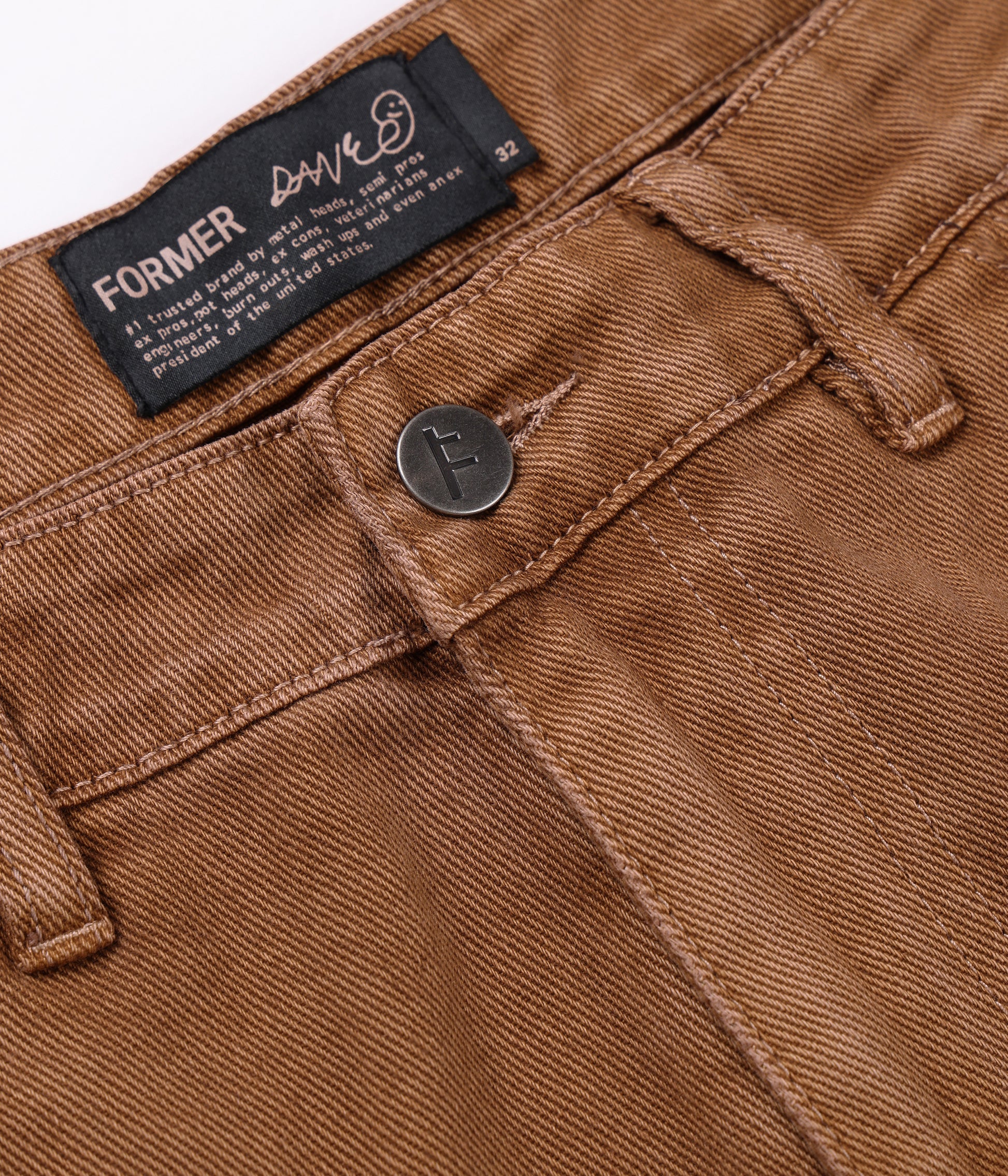 Designed by FORMER founder Dane Reynolds, the Reynolds Work Pant is our best selling baggy fit with a wide silhouette and 19” leg opening. Constructed in a durable  100% washed denim fabric, featuring a fixed waist, signature pop colour Crux logo woven label on back pocket, double workwear pockets, and FORMER branded metal shank button.