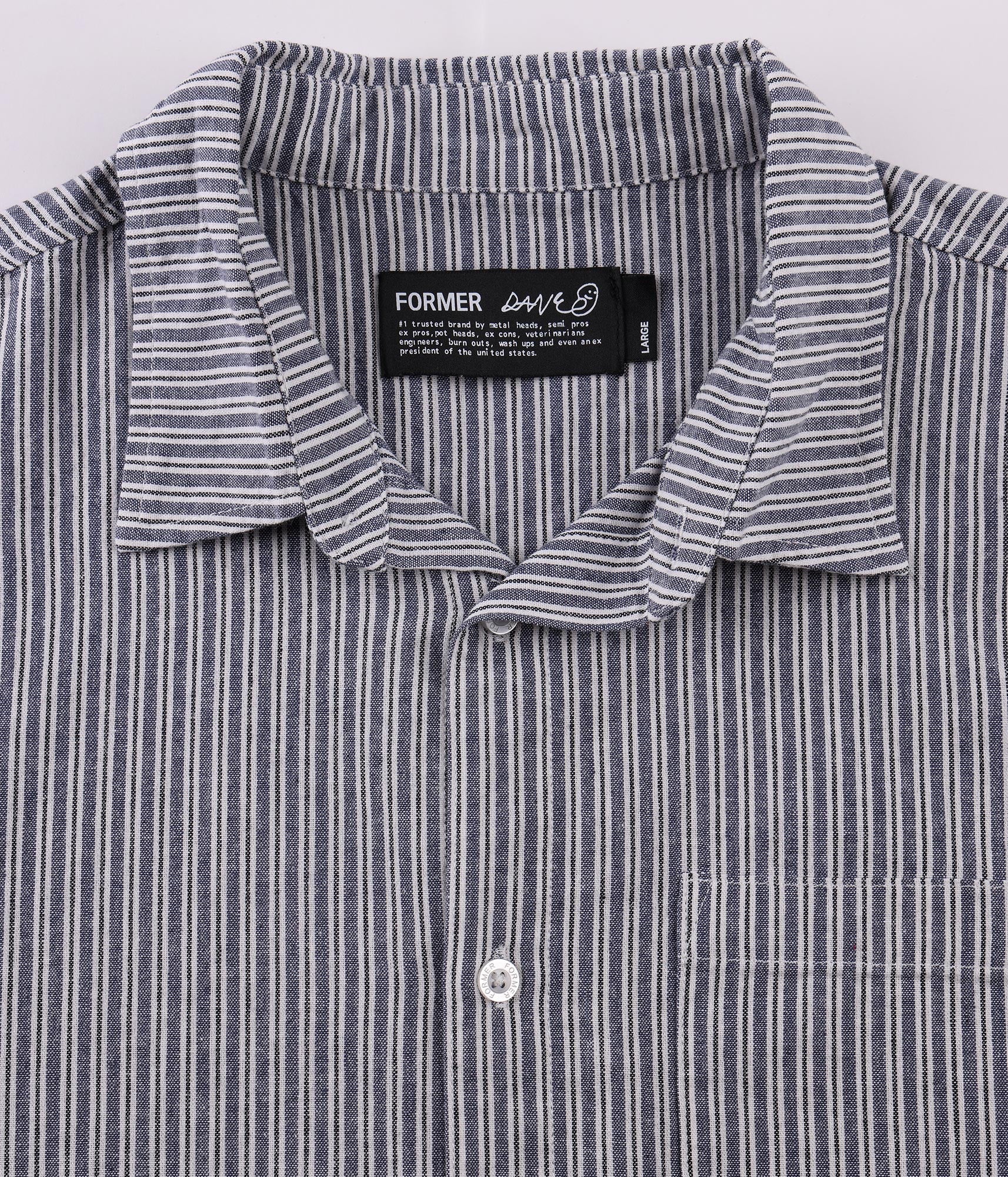 Designed in collaboration with FORMER founder Dane Reynolds and delivered in 100% premium cotton with a yarn-dyed stripe pattern. Constructed in our best-selling Vivian shirt fit, featuring a woven label on side seam, chest patch pocket, and button closure.