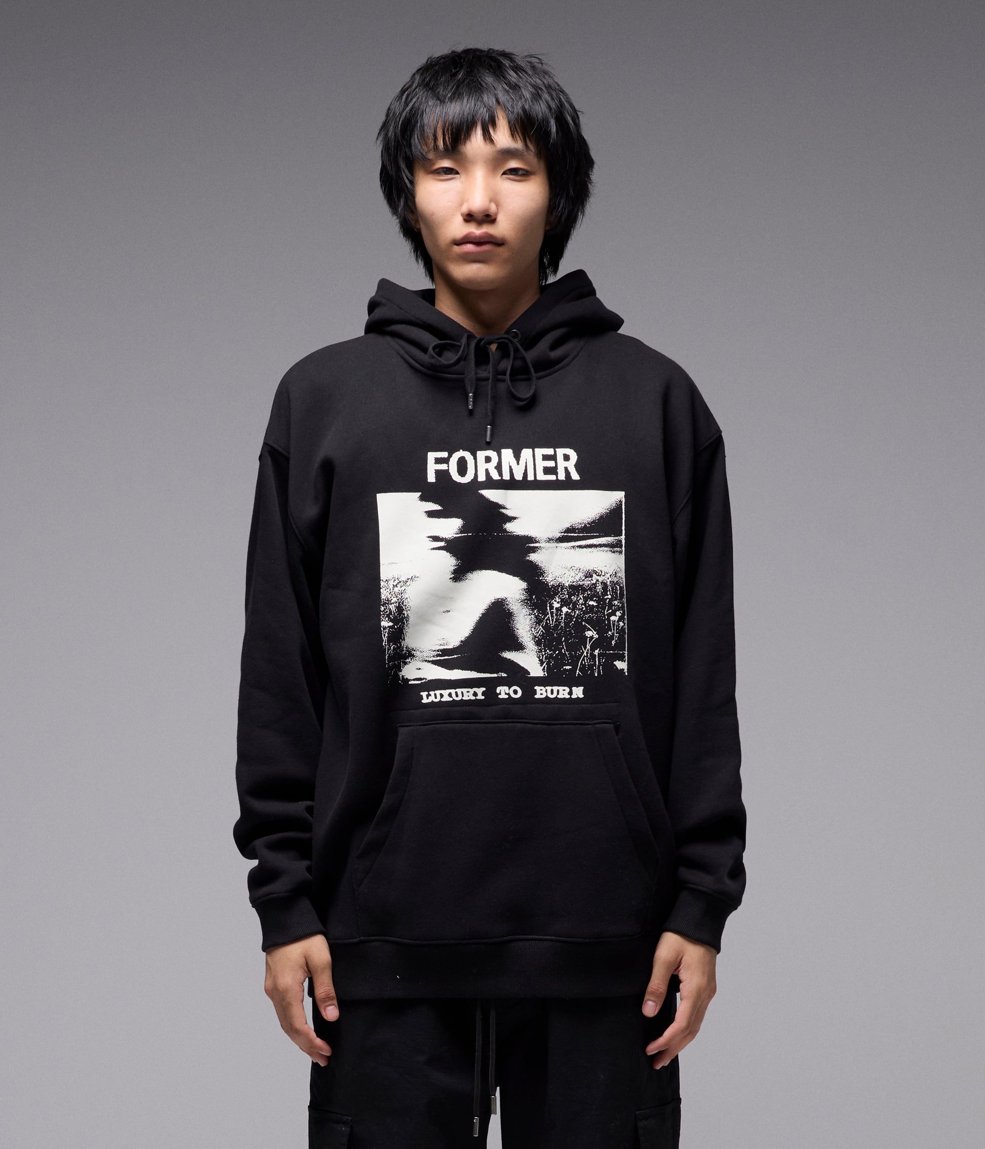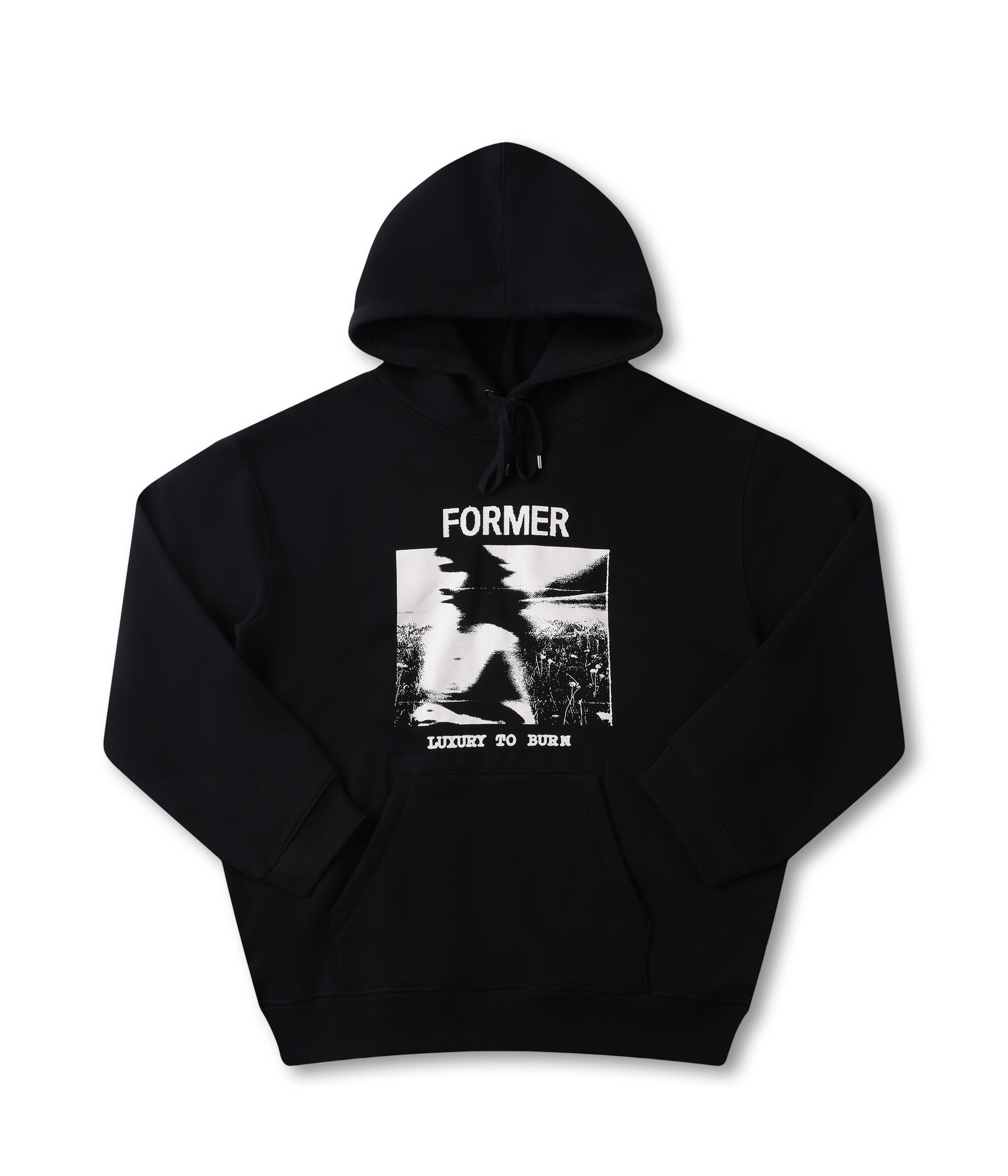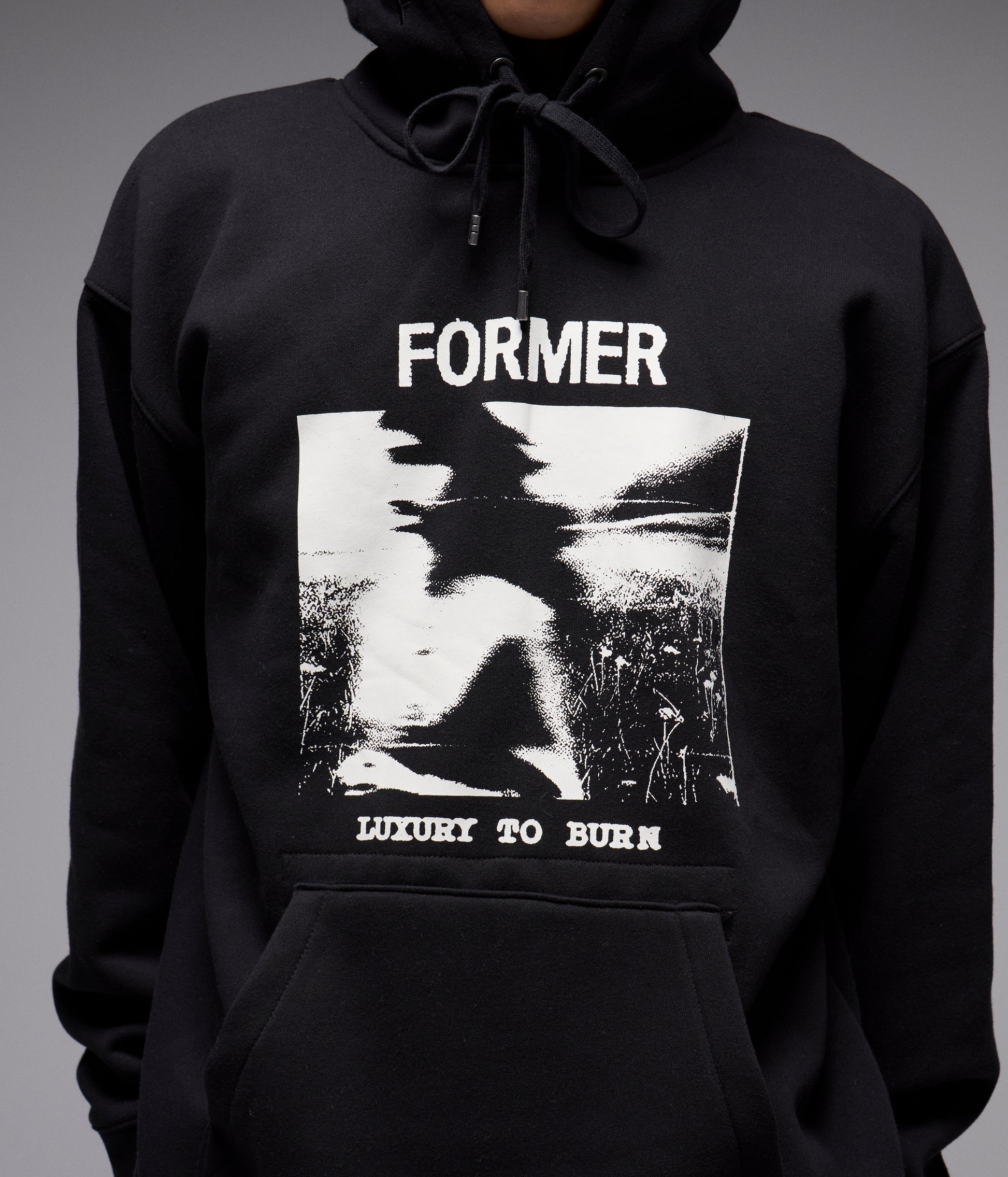Designed in a premium 320GSM cotton faced brushed fleece with 50% cotton 50% poly for warmth and comfort, and delivered in our standard FORMER hood fit. Featuring drawcord closure with FORMER branded metal aglets, front graphic in a soft hand plastisol screen print, Franchise F logo embroidery on hood, kanga pocket with military stitch detail and internal woven label, and double hood lining.