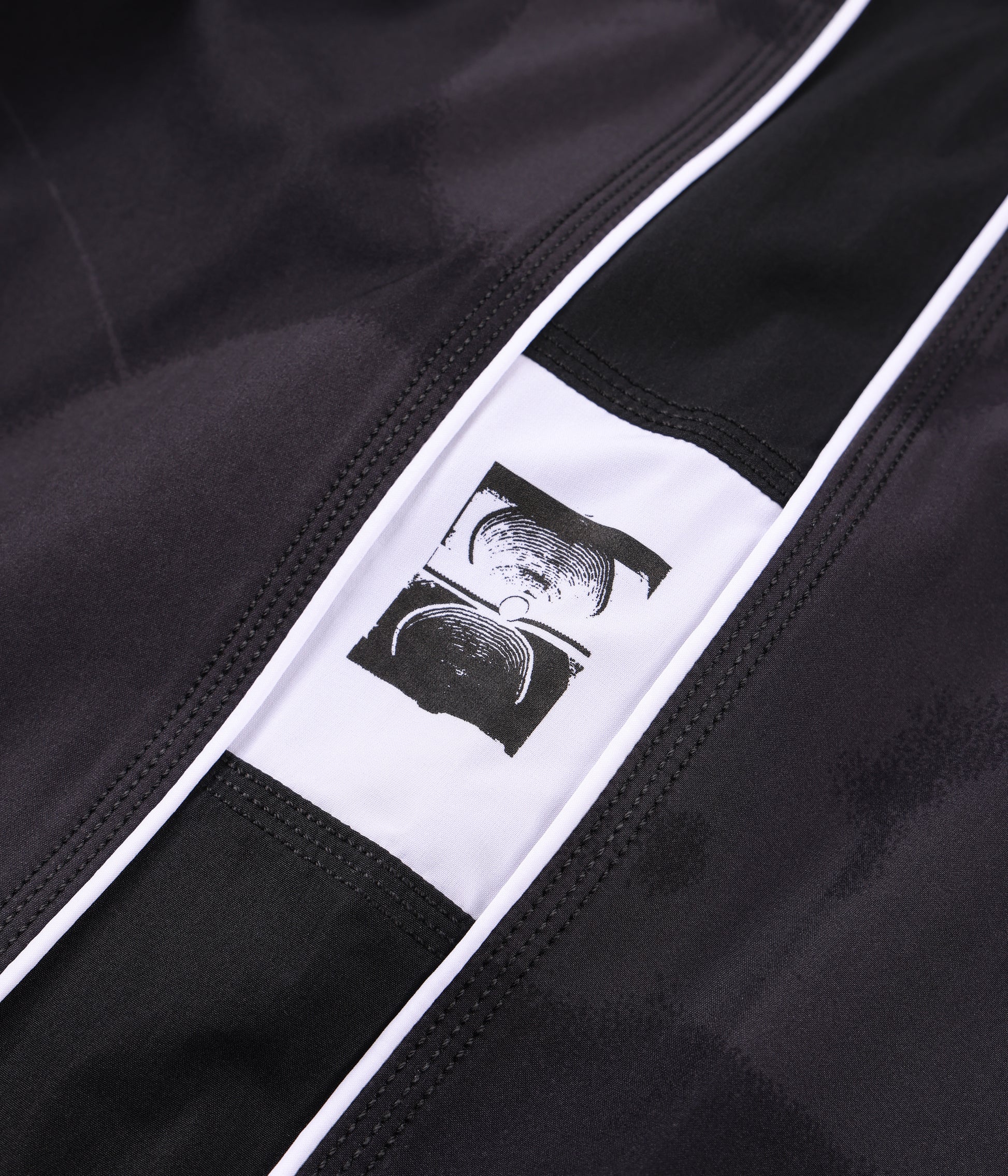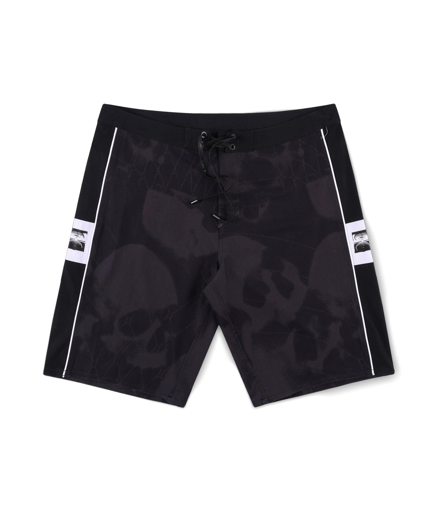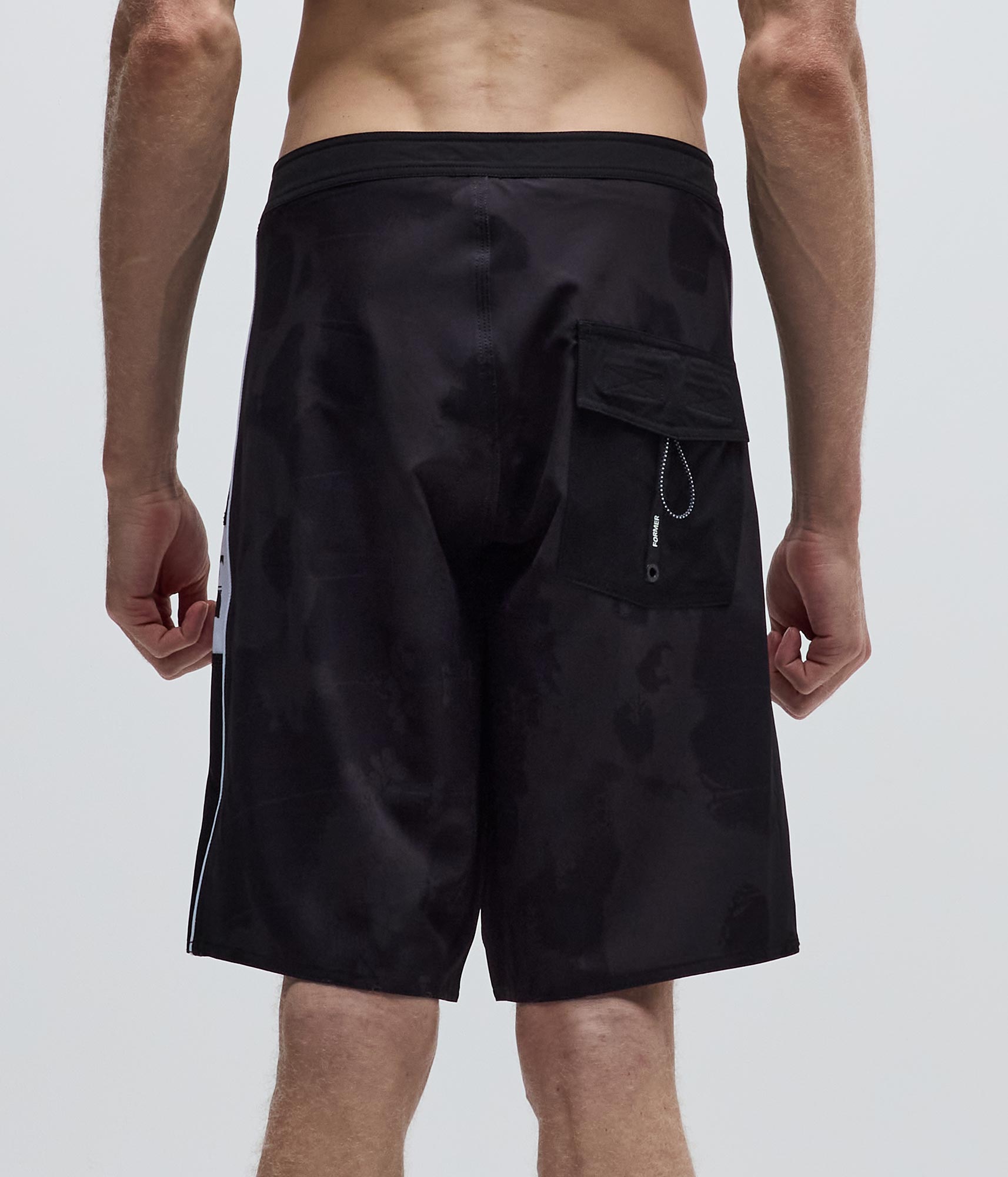 Constructed from a soft poly-spandex blend with a premium 4-way stretch and delivered in our standard 20" leg length fit. Featuring an all-over yardage print and hand-drawn screenprinted graphics by artist Edouard Depaz. Finished with piped side panel design, fixed waist, secure velcro back patch pocket, and a soft pre-wash finish.