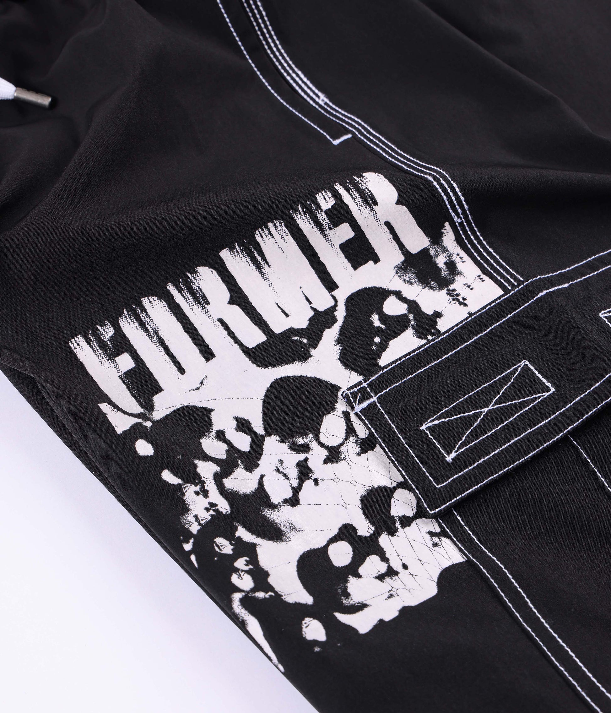 Constructed from a premium poly-spandex blend with comfortable 4-way stretch and delivered in our 21" leg length swim trunk fit. Featuring elastic waist and secure drawcord closure with easy access side pockets and side cargo patch pockets. Designed with hand-drawn graphics by artist Edouard Depaz in a soft hand plastisol screen print.