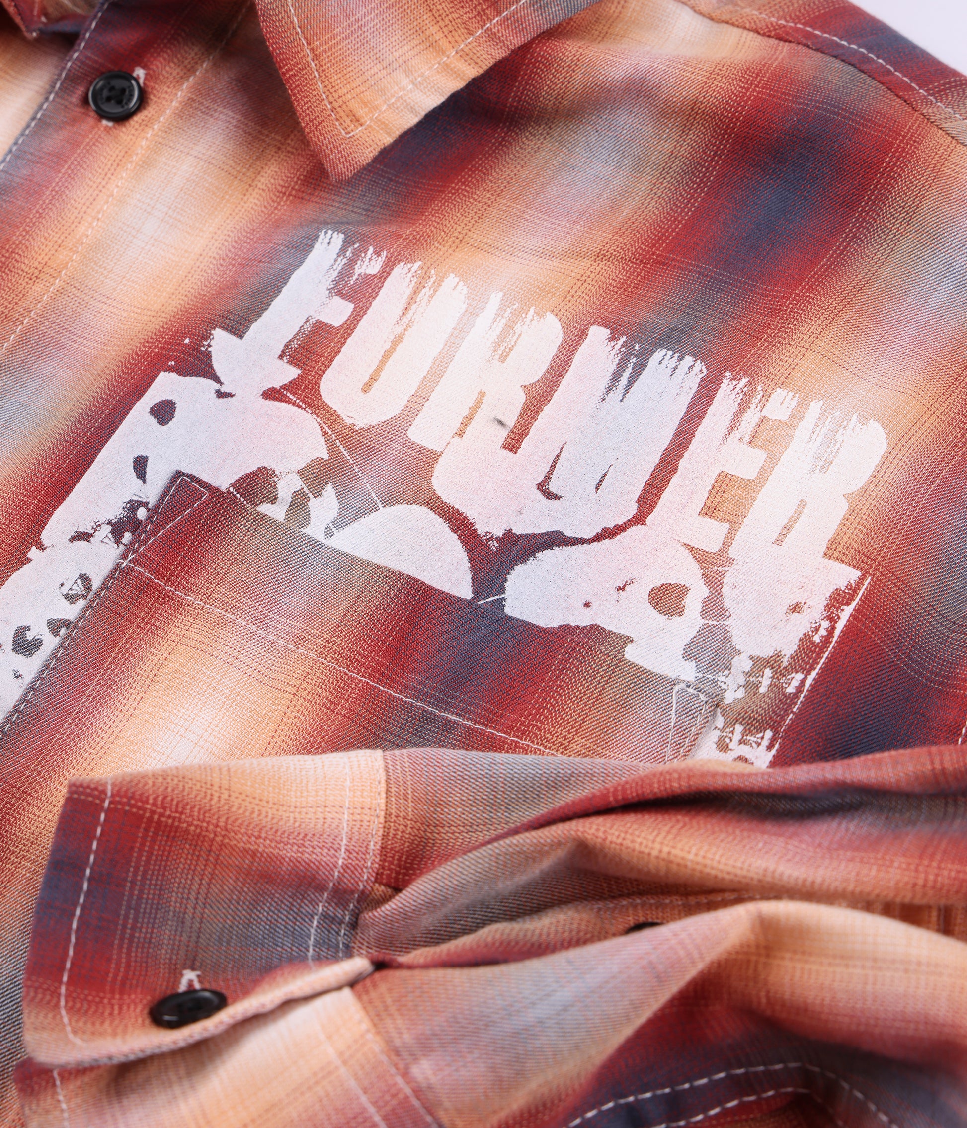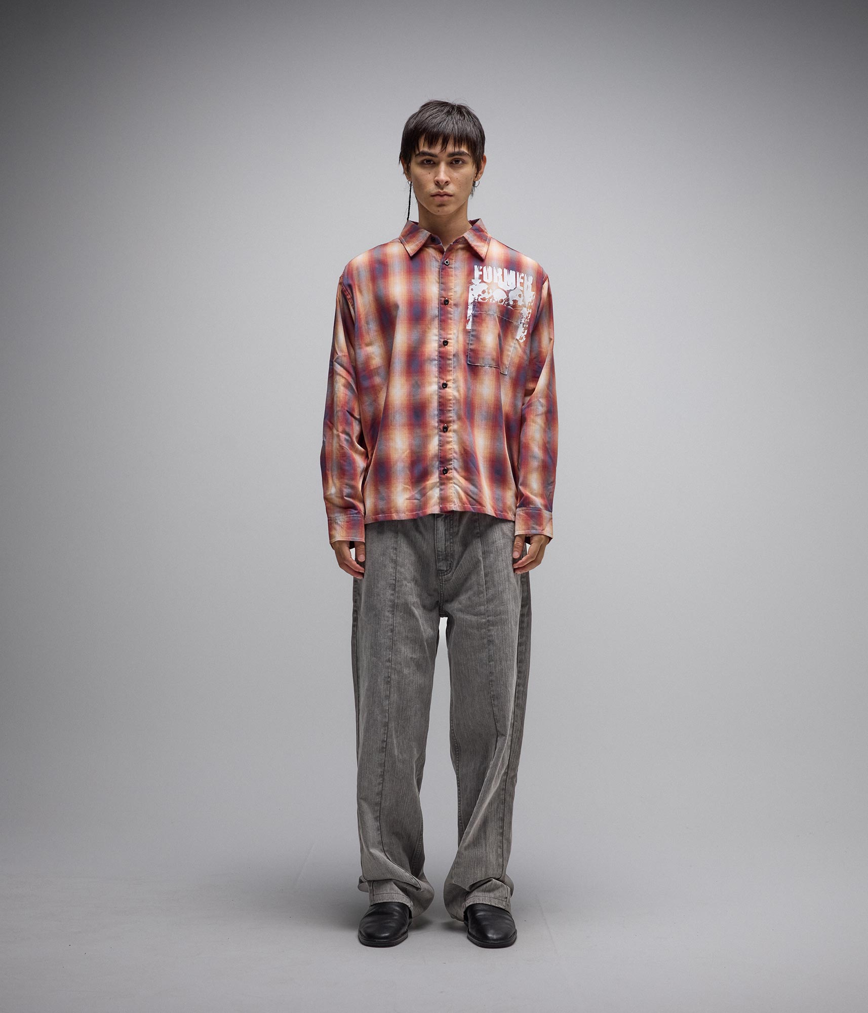 Constructed from a premium 100% cotton yarn-dye check and delivered in our signature FORMER Vivian shirt fit. Featuring a hidden hand-drawn graphic under the chest pocket by artist Edouard Depaz in a soft hand plastisol screen print and front button closure.